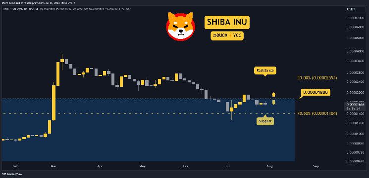 SHIB انخفض بنسبة 5% على الرسم البياني الأسبوعي بعد فشل الثيران في السيطرة على السعر.