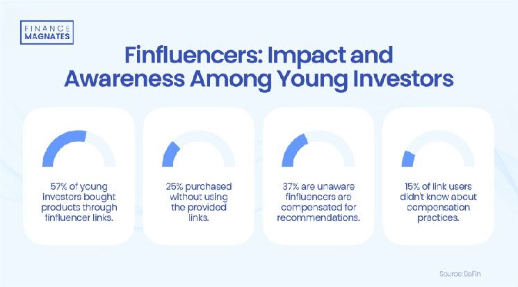 الفينفلونسرز، أو المؤثرين على وسائل التواصل الاجتماعي الذين يقدمون نصائح مالية، لهم تأثير كبير في هذا السياق. أكثر من نصف المستجيبين بحثوا عن المعلومات المالية من الفينفلونسرز. يعترف ما يقرب من 90 بالمئة أن هؤلاء الأفراد يقدمون نصائح استثمارية، تركز بشكل أساسي على الأسهم والأصول الرقمية.