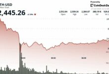 على الرغم من الأداء المذهل منذ بدء التداول، لم تؤثر الدعاية المصاحبة لـ ETF الإيثيريوم الفوري بشكل مباشر على سعر ETH في ظل عمليات التصفية الضخمة. في وقت كتابة هذا التقرير، كان يتم تداول العملة بقيمة 3,176.88 دولار، بانخفاض قدره 8.4% خلال الـ 24 ساعة الماضية.