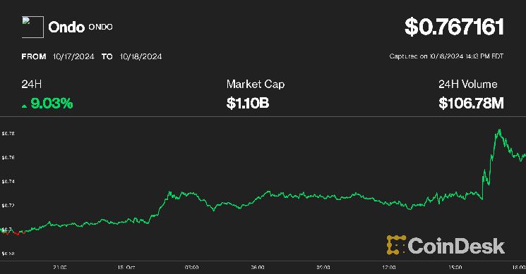 قفز سعر رمز حوكمة أوندو، (ONDO)، بنسبة 8% يوم الجمعة بعد تقرير عن سعي شركة إدارة الأصول بلاك روك لإدراج صندوقها النقدي المرمز BUIDL كضمان في بورصات المشتقات الرئيسية.
