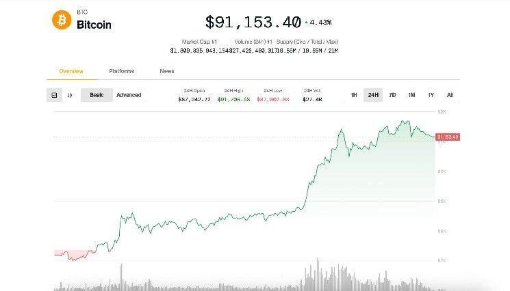 - ما الذي دفع البيتكوين للارتفاع فوق 91,000 دولار؟