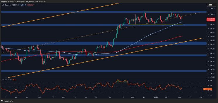 تراجعت الأسعار نحو منطقة دعم قوية تشمل المتوسط المتحرك لـ100 يوم والمنطقة الحرجة عند 90 ألف دولار. ساعد نشاط الشراء القوي في استقرار العملة ضمن نطاق ضيق للتداول بين 90 ألف و102 ألف دولار، مما يعكس تردد السوق العام.